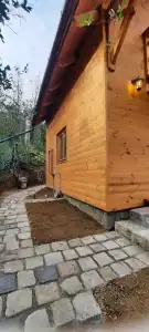 A nyílászárók 2 rétegű termopan üvegezésűek Roto vasalattal. Kiegészítő bútorai - a konyha- és fürdőszobapult, az étkezőasztal - diófából készültek igényes asztalosmunkával.