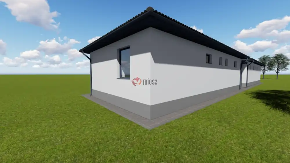 A belső térben: 3 hálószoba, nappali- étkező- konyha, fürdőszoba, wc, előtér és közlekedő kerül kialakításra. A nappaliból járólappal burkolt 8.7 nm.-es terasz épül teraszajtóval, az első bejáratnál fedett előtér fog állni.