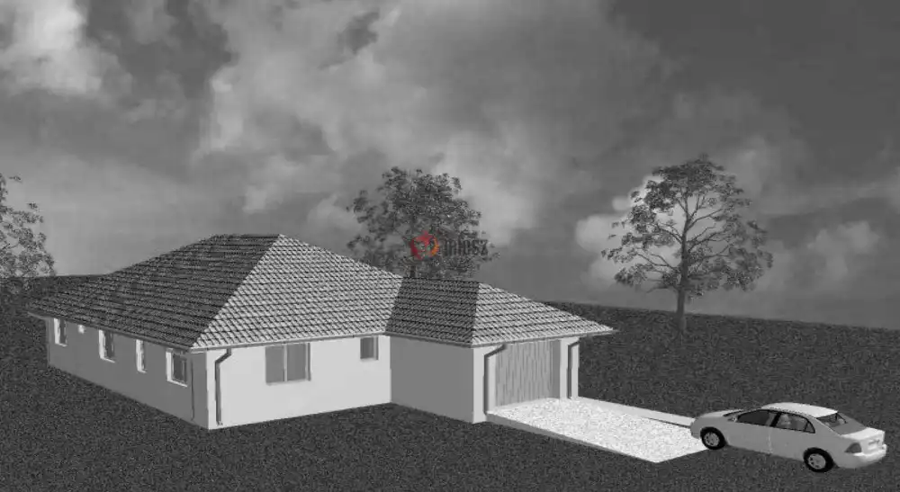 Amerikai konyhás nappali 46m² + 3 hálószoba a szobák 14 m² 14,44 m² 14 m² esek, fürdőszoba 10 m² háztartási helység 8 m² előtér 6 m² közlekedő10 m², kamra, garázs + tároló 22 m² + DÉLI FEKVÉSŰ TERASZ 22 m².