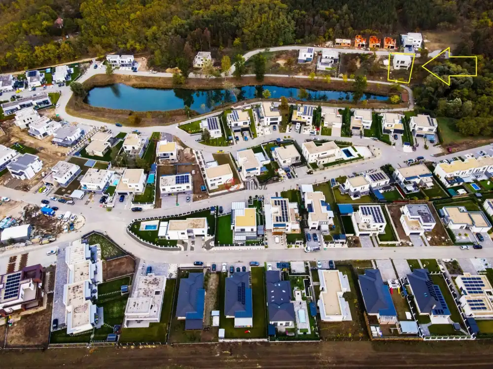 Ebben a VARÁZSLATOS TÓ KÖRÜL ELHELYEZKEDŐ, csodás szépségű, hangulatos környezetben, melyhez még egy kiserdő is tartozik, gyönyörű modern házak épülnek amerikai stílusban.